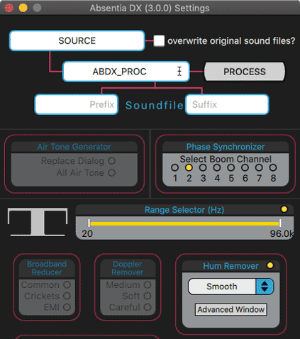 The Absentia DX algorithm analyzes production dialog recordings and then removes obvious hums, wireless rings, and ticks, while maintaining the integrity of the human voice.